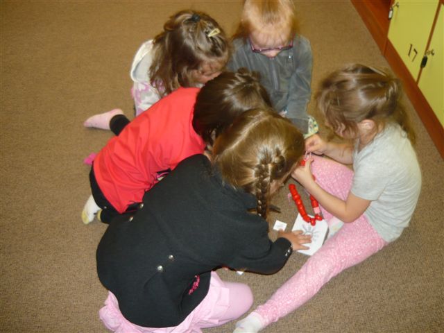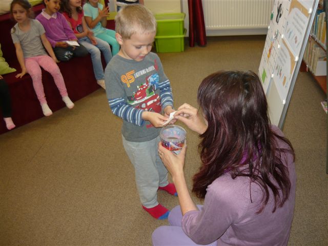 Na dramatickou hodinku Svět kolem nás přijely do Knihovny Boženy Benešové Napajedla také děti z Mateřské školy Žlutava. Zahrály si Člověče, nezlob se, odpovídaly na nejrůznější otázky a zasoutěžily si v navlékání korálků a skládání obrázků.