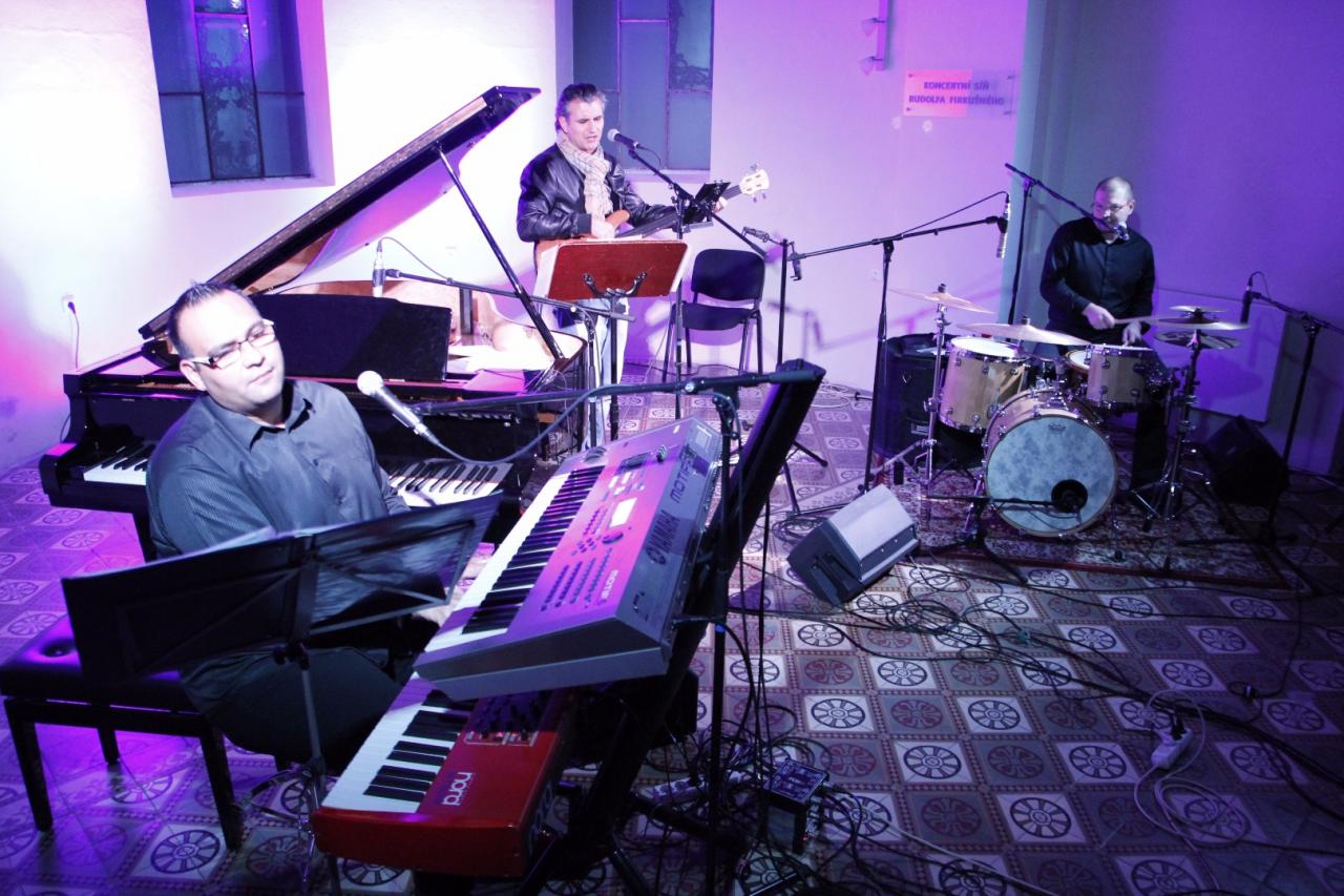 Parta muzikantů v nejlepších letech, které spojuje láska k jazzové hudbě a živému hraní, se předvedla v Klášterní kapli 21. října. Foto: Klub kultury Napajedla