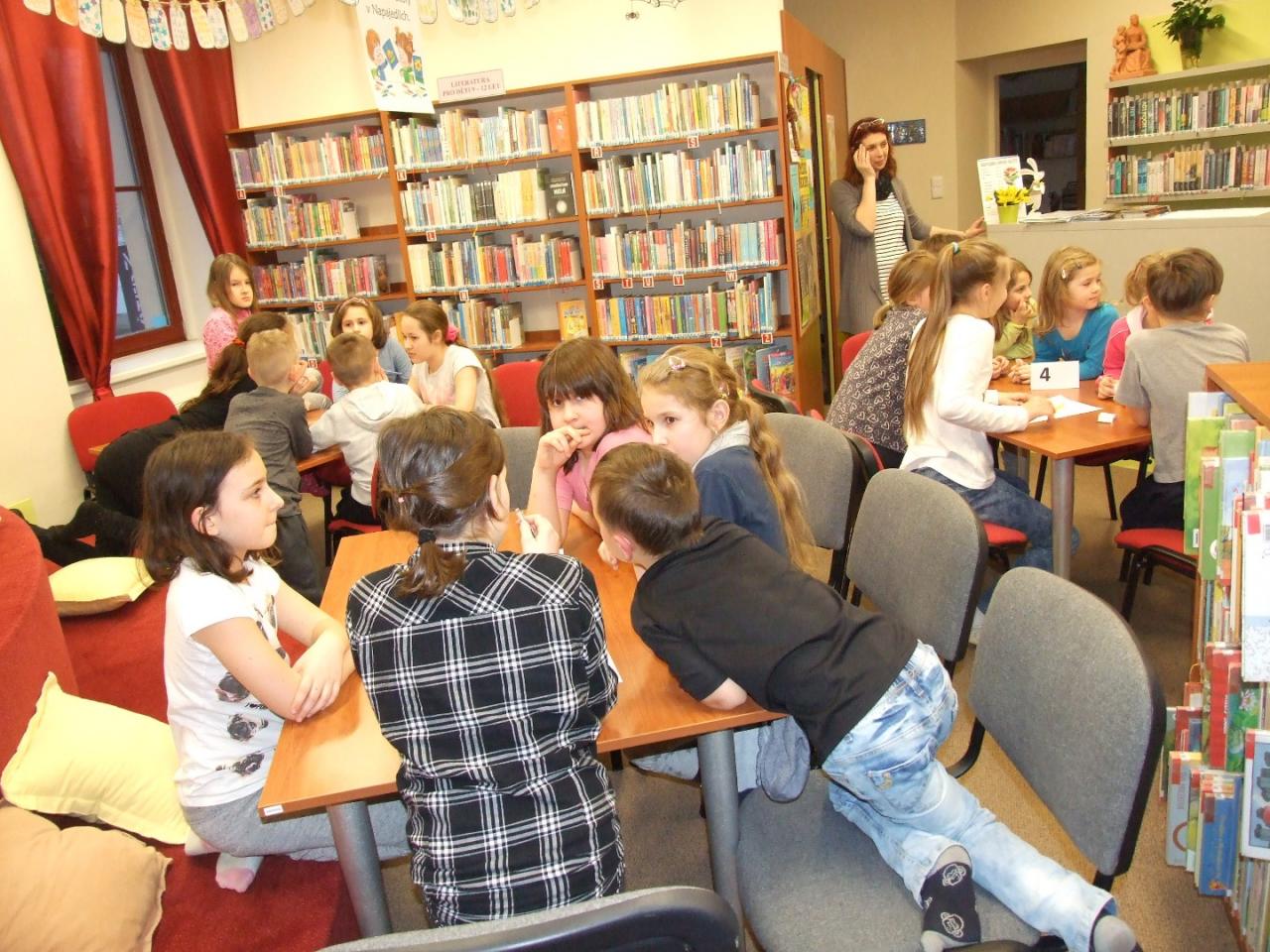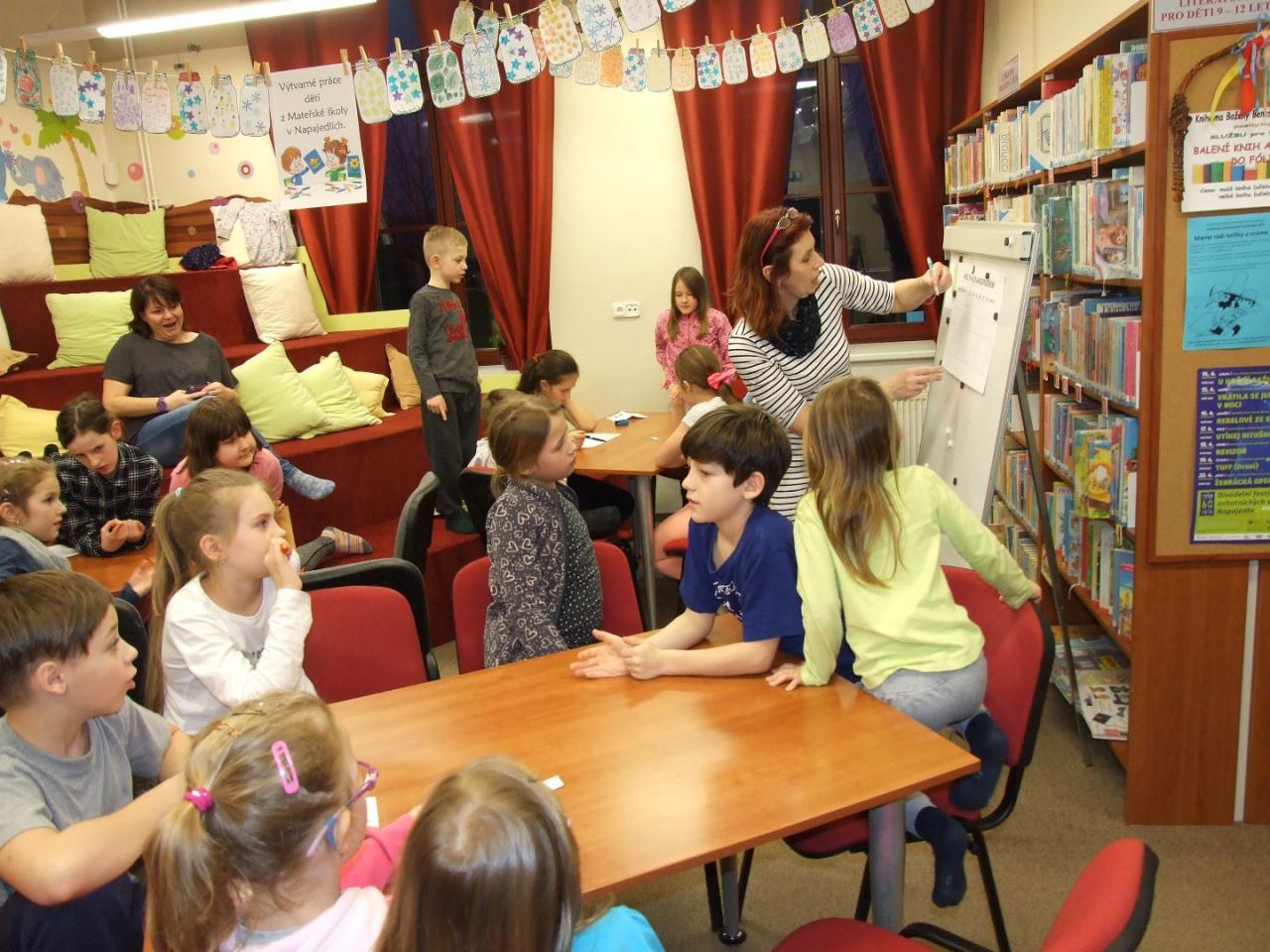 Ale i do letošního, již 18. ročníku, se v pátek 26.3.2018, se svým programem zapojila také naše knihovna. Pro děti si připravila nejrůznější hry, soutěže a kvízy na téma Povídání o pejskovi a kočičce Josefa Čapka. Děti, rozdělené do 4 družstev, se zápalem soutěžily, neustále sledovaly počet získaných bodů a radovaly se z vítězství. Škoda, že zvítězilo jen družstvo číslo 4, cenu by si totiž zasloužili všichni, včetně organizátorů.