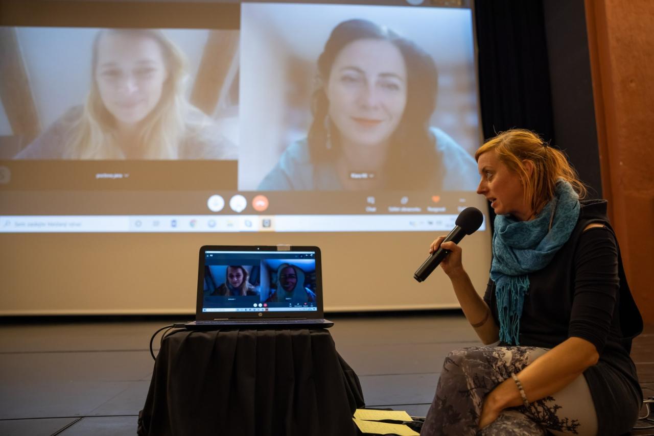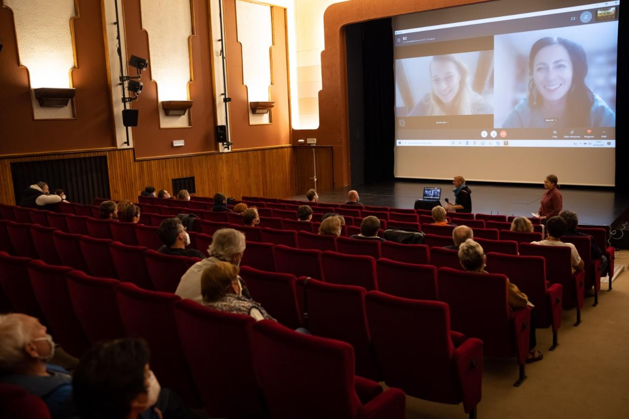 Ačkoliv naši hosté Klára a Jana nemohly nakonec dorazit, spojily se s námi pomocí techniky a ocitly se tak naráz v sále a my u nich doma. Téměř hodinu trvající diskuse po filmu plná otázek nadšených diváků zakončila krásný středeční večer. Přinášíme vám pár "fotomomentů" z tohoto milého setkání!