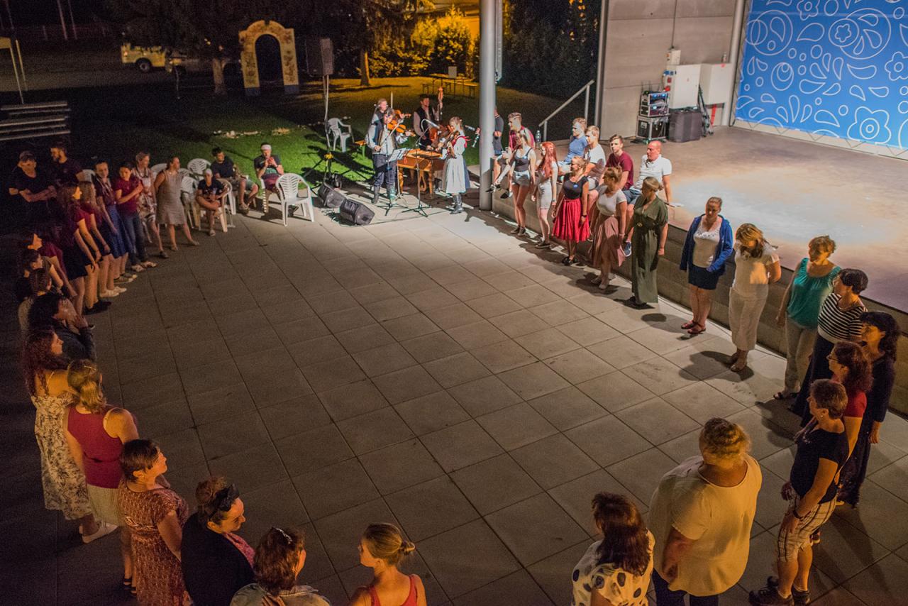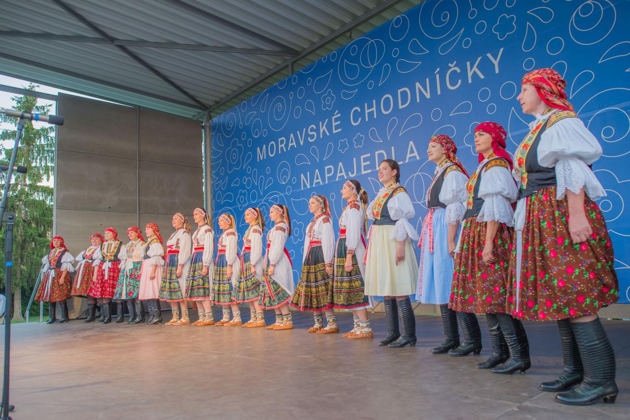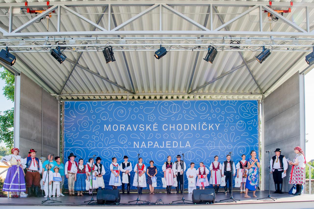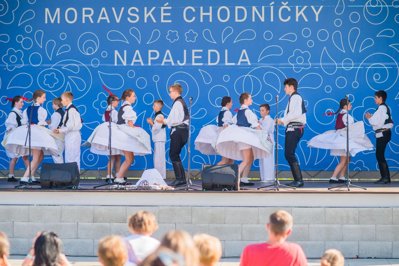 Jubilejní 20. setkání folklórních souborů tří národopisných oblastí Slovácka, Valašska a Hané, folklorní festival v Napajedlích - Moravské chodníčky se konal na nádvoří Nového Kláštera 7. - 8. 8. 2020