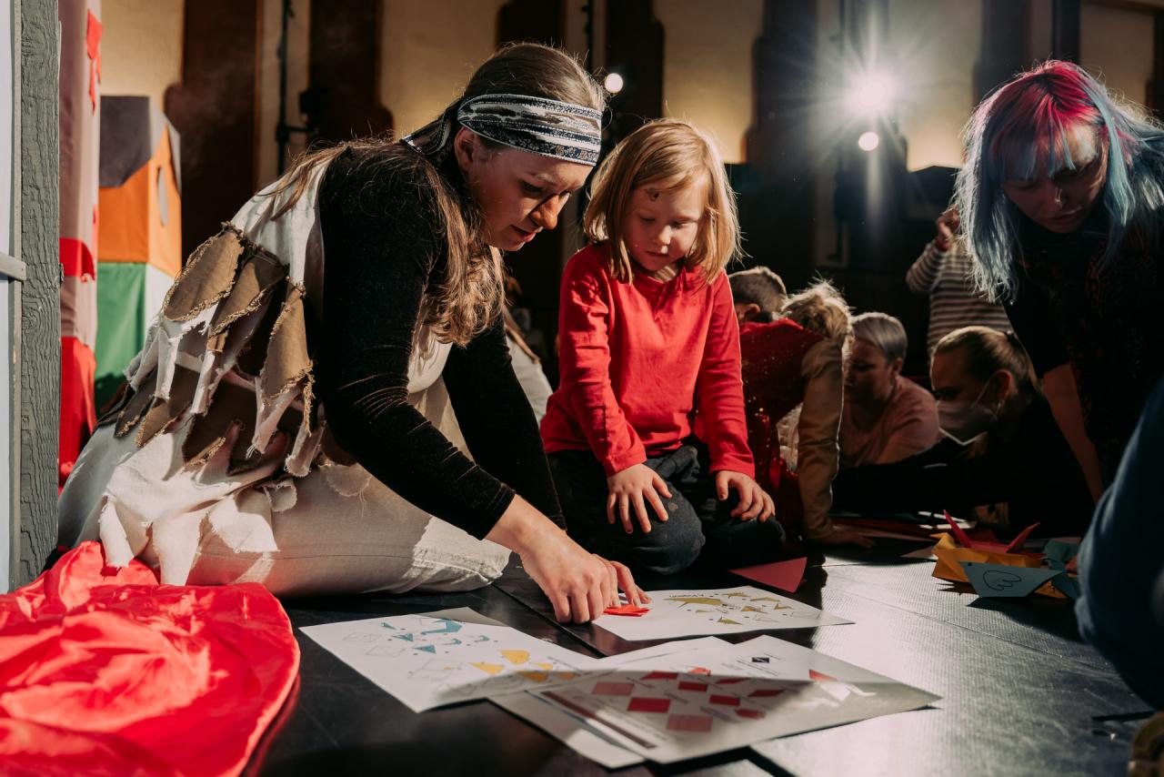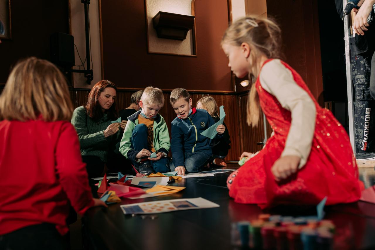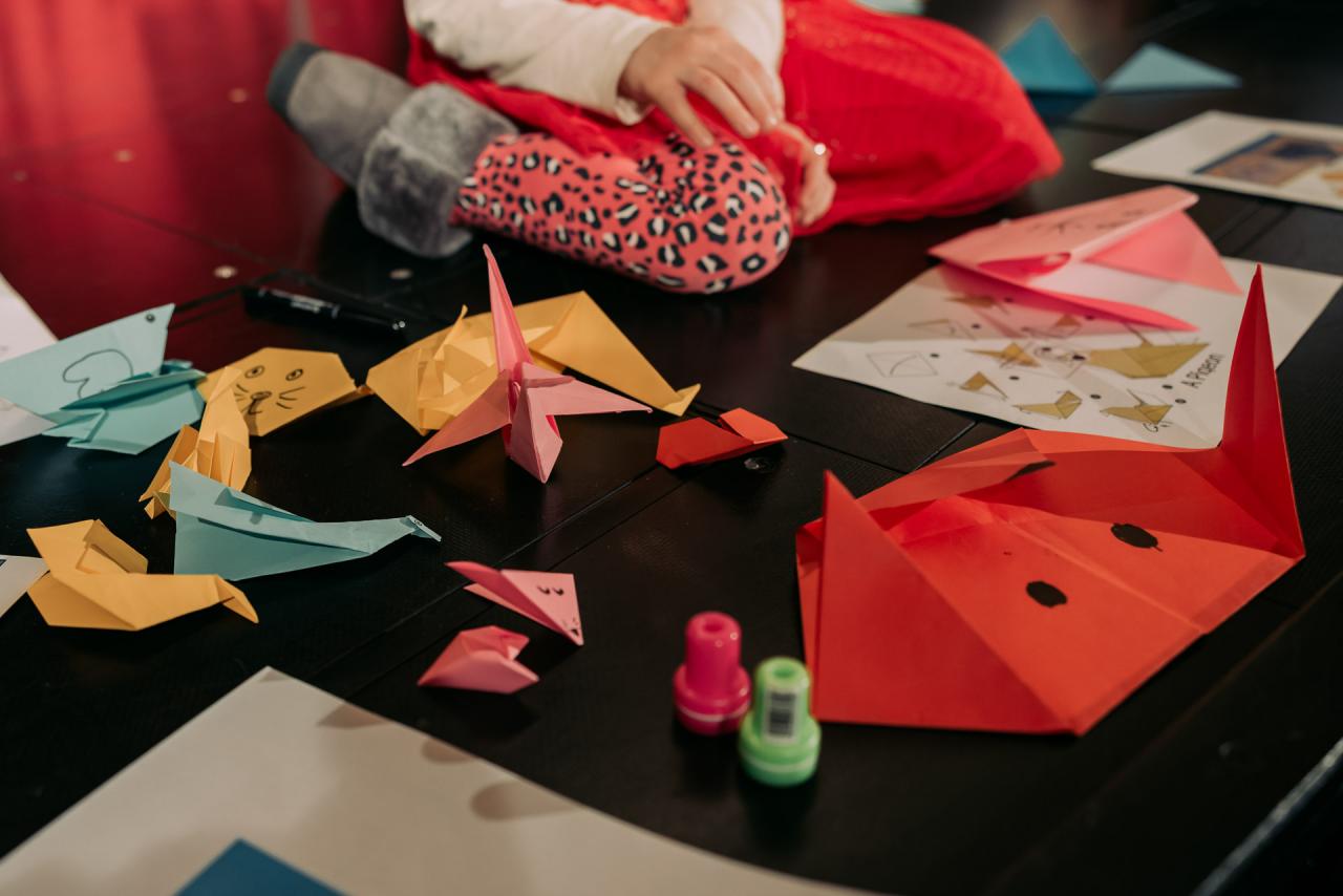 Bezprostředně po skončení pohádky následoval hravý workshop origami skládaček. Děti si tak mohly vytvořit a odnést originální, vlastnoručně vytvořené, dílo !