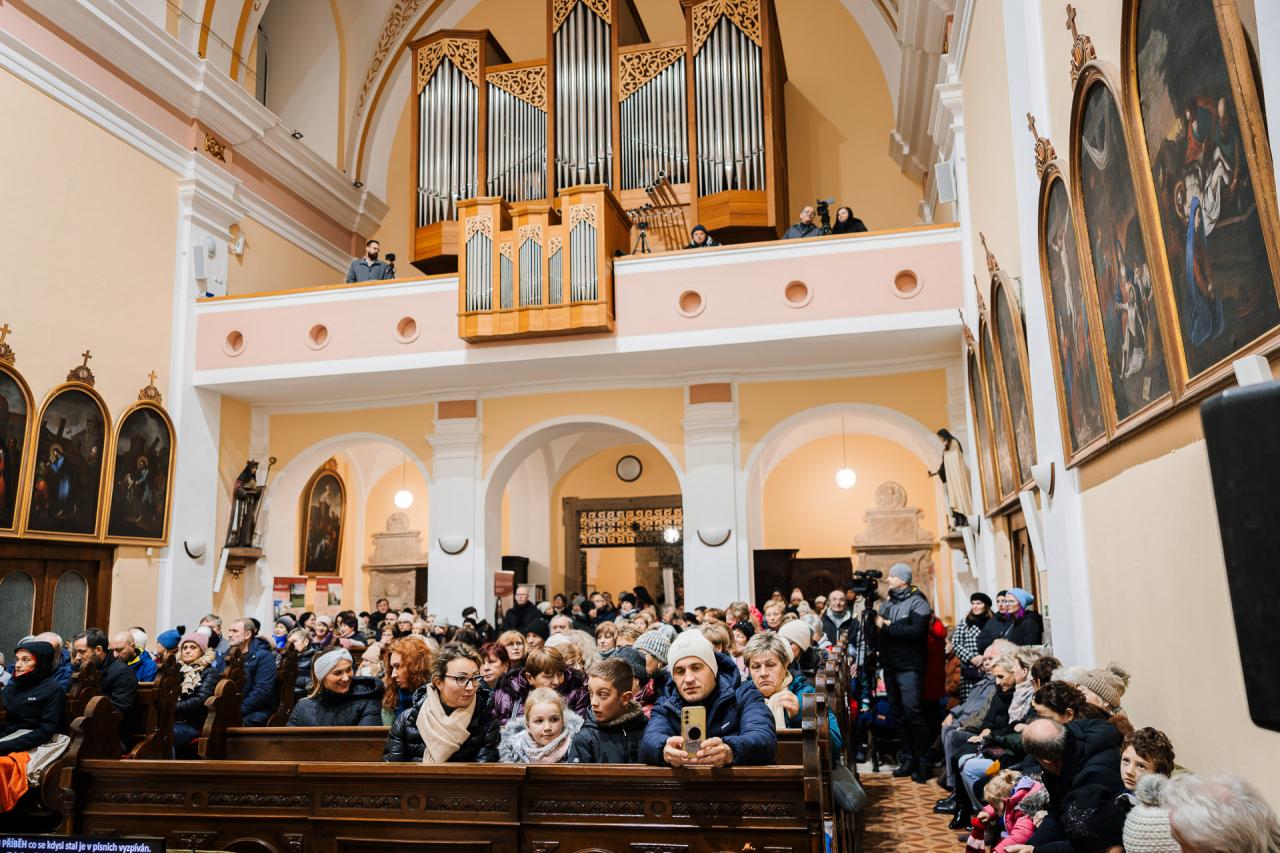 Atmosféra svátečního koncertu v kostele sv. Bartoloměje.
