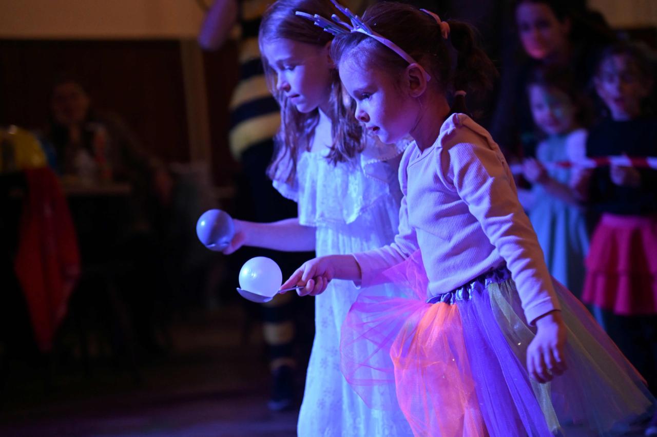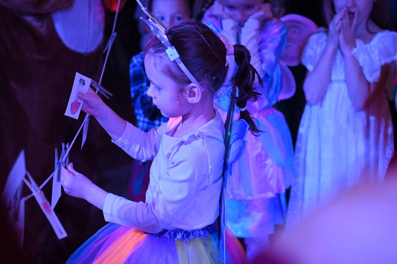 Sál sokolovny se proměnil v barevný les plný kouzelných bytostí a lesních zvířátek.
